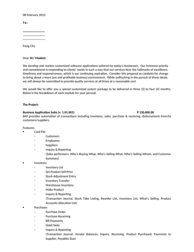 Sample Letter of Project Proposal - BAS Implementation | DOCX