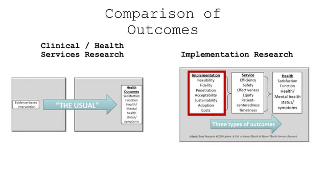 A, Proctor's conceptual model of implementation science outcomes. B ...