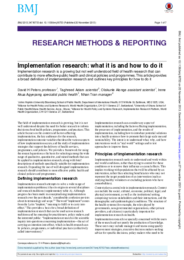 (PDF) Implementation research: What it is and how to do it