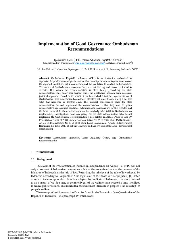 (PDF) Implementation of Good Governance Ombudsman Recommendations