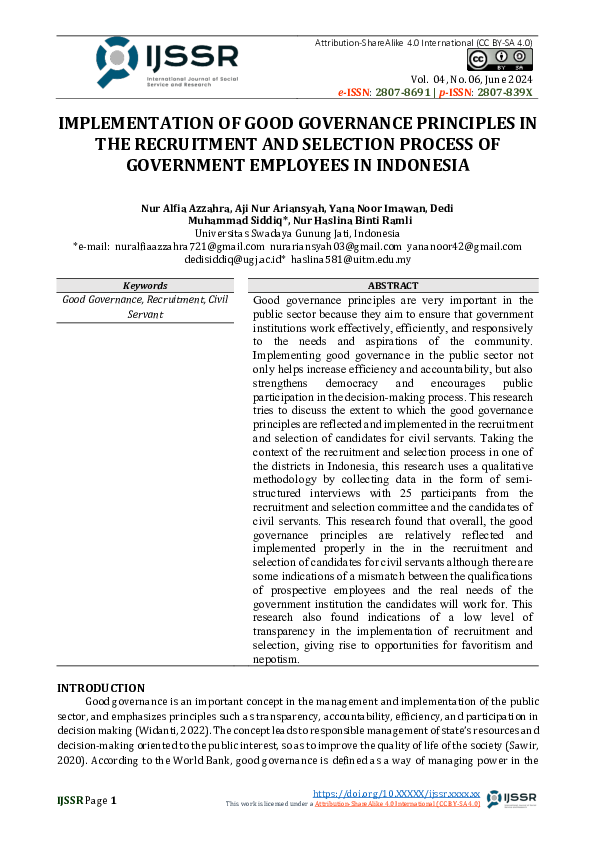 (PDF) Implementation of Good Governance Principles in the Recruitment ...