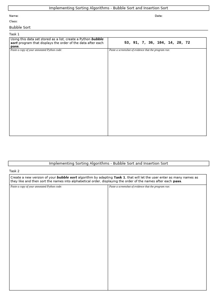 Activity: Sort Algorithm | OpenSTEM Pty Ltd