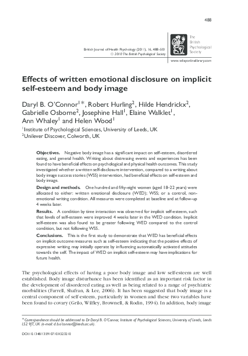 (PDF) Effects of written emotional disclosure on implicit self-esteem ...