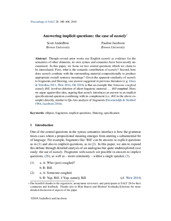 (PDF) Answering implicit questions: the case of namely