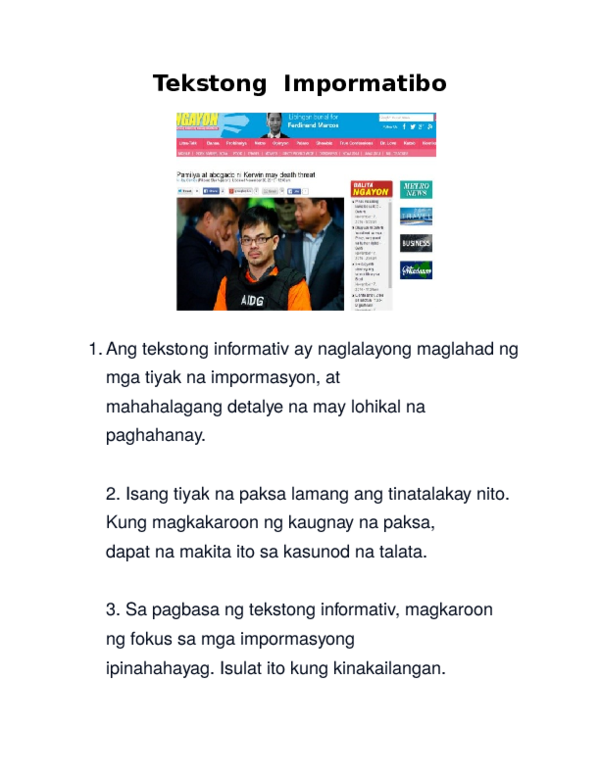 Impormativ - Isang halimbawang teksto sa tekstong informativ - Pagbasa ...