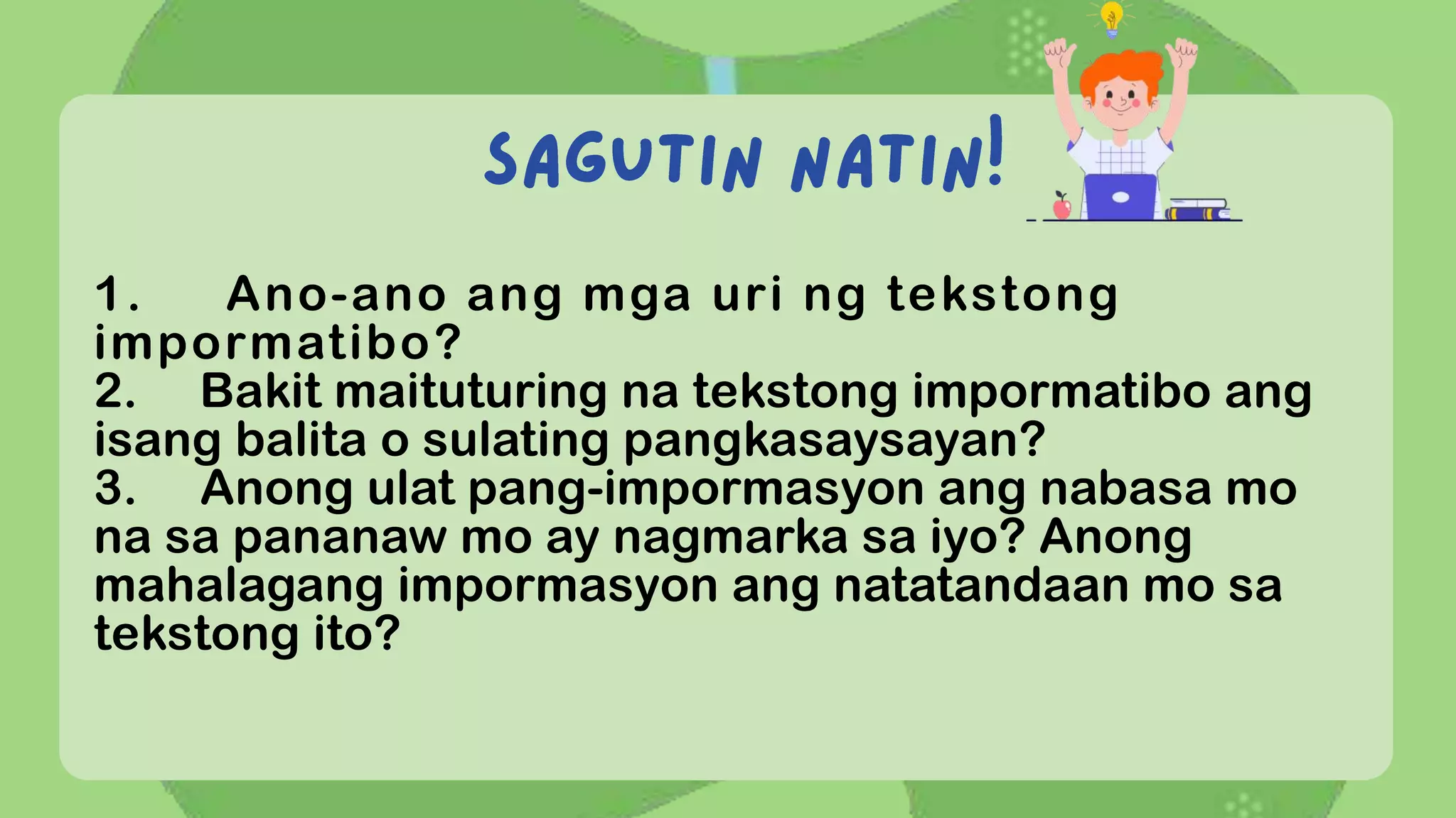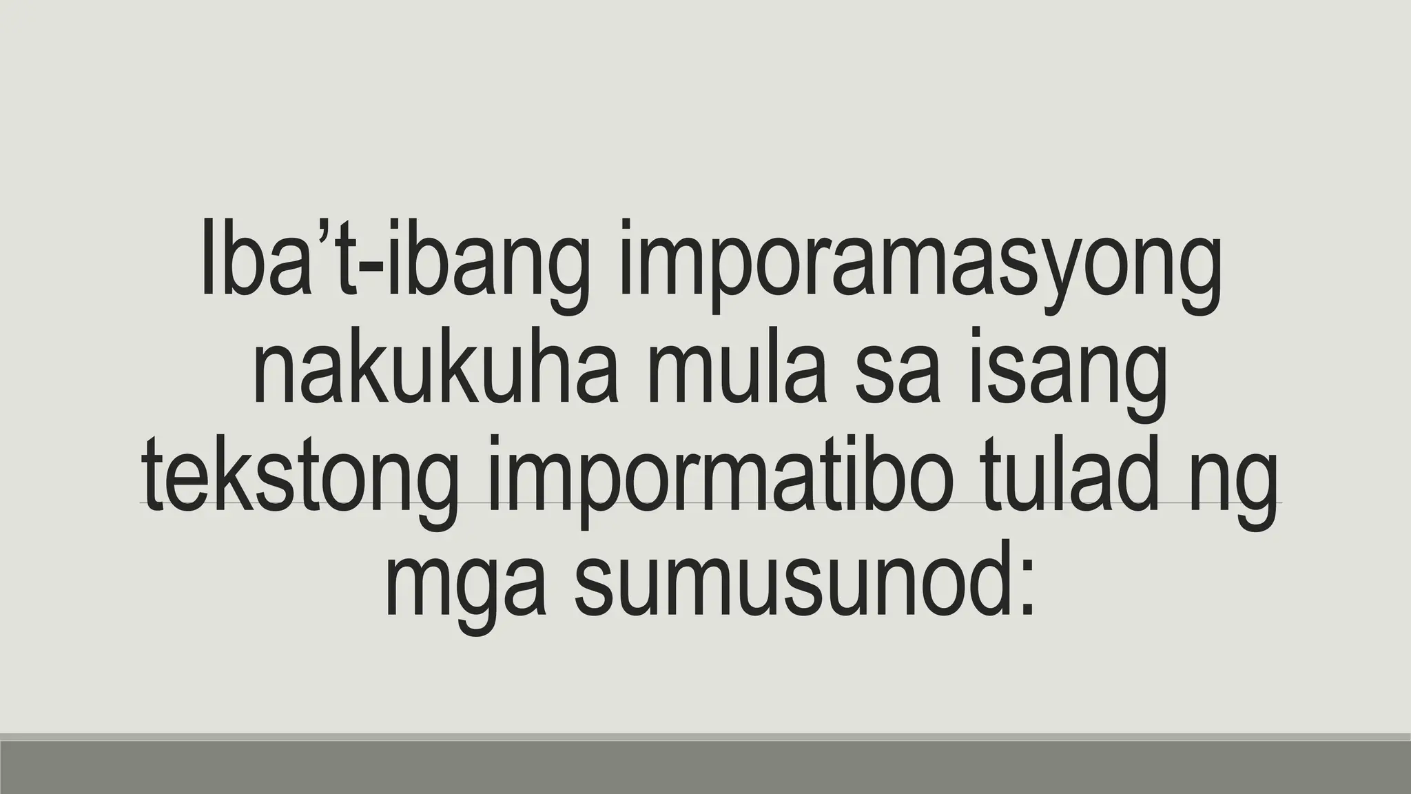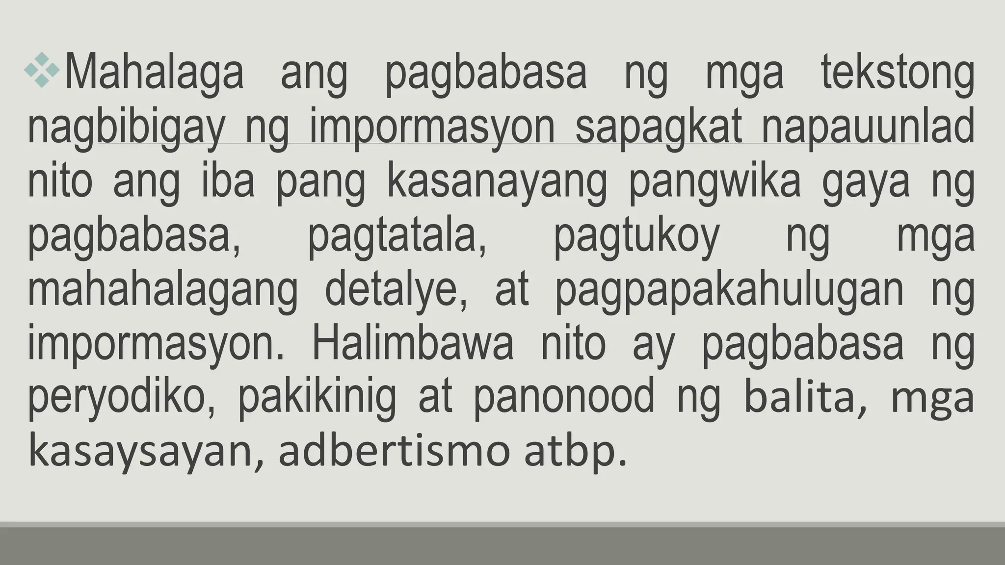 Ibat Ibang Uri Nang Tekstong Impormatibo - pagbabasa tekstong