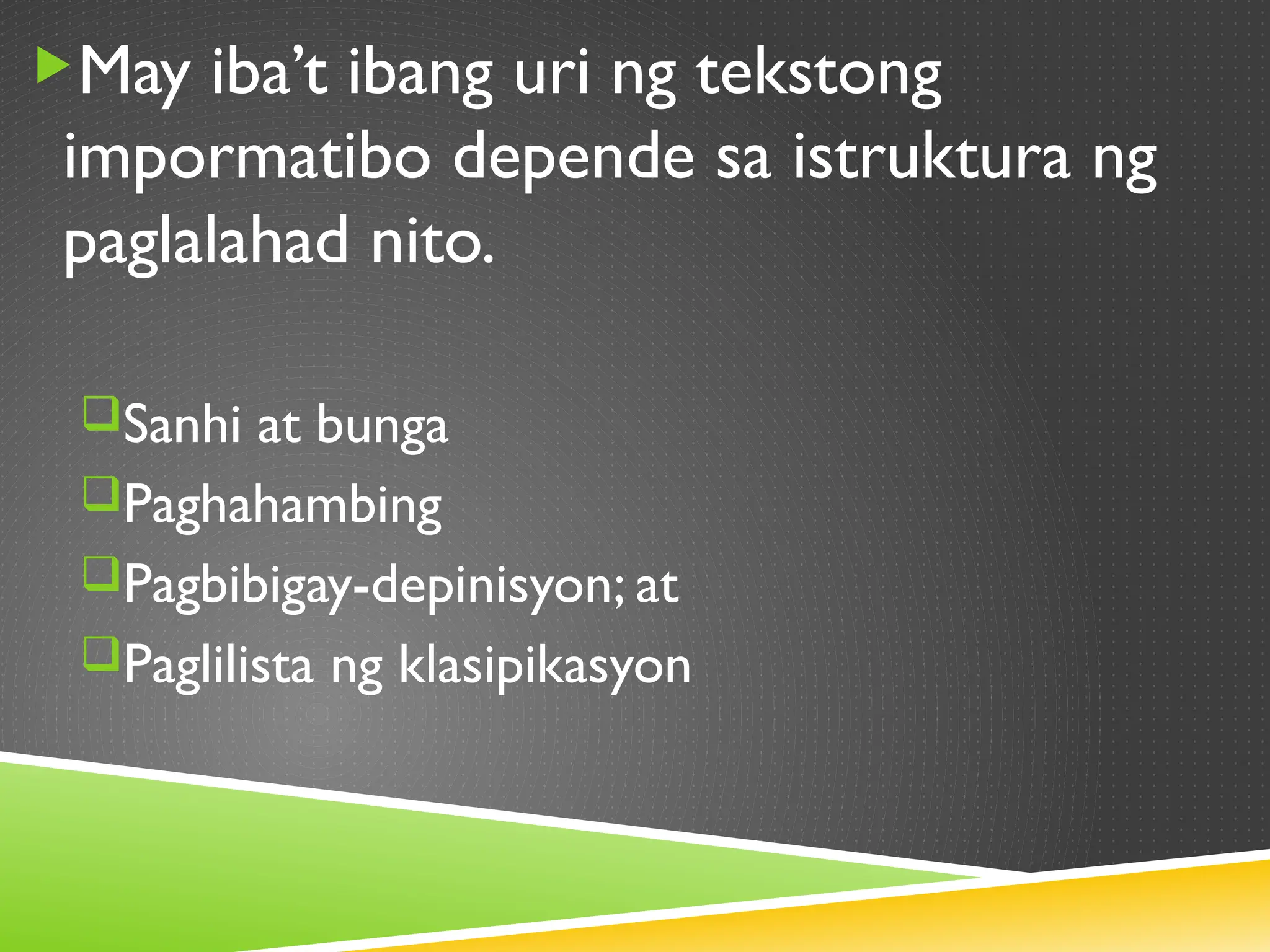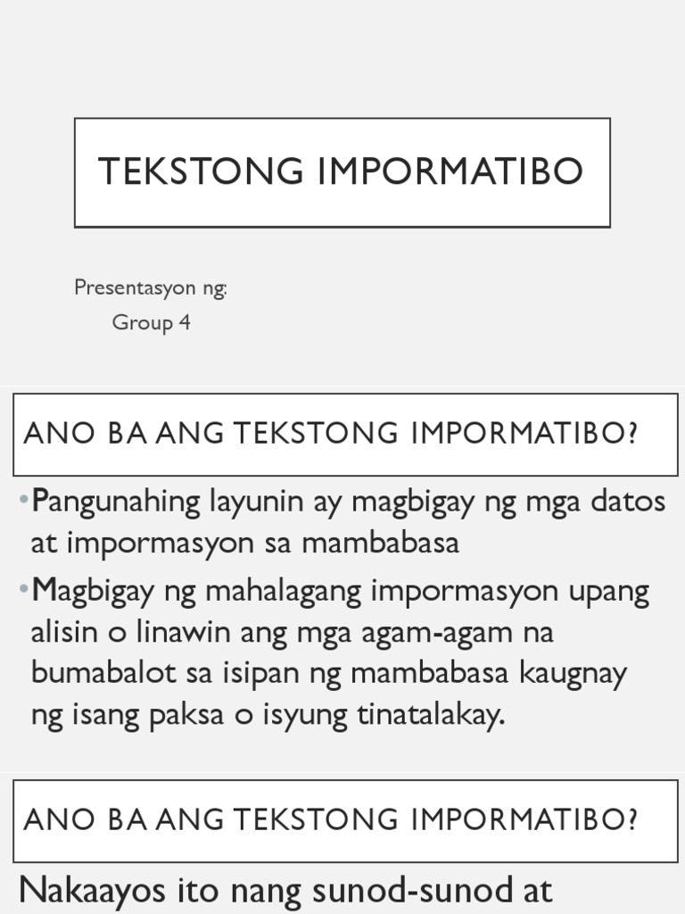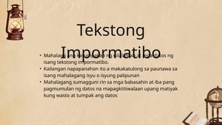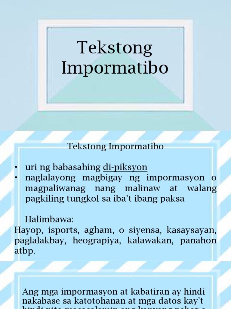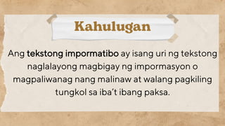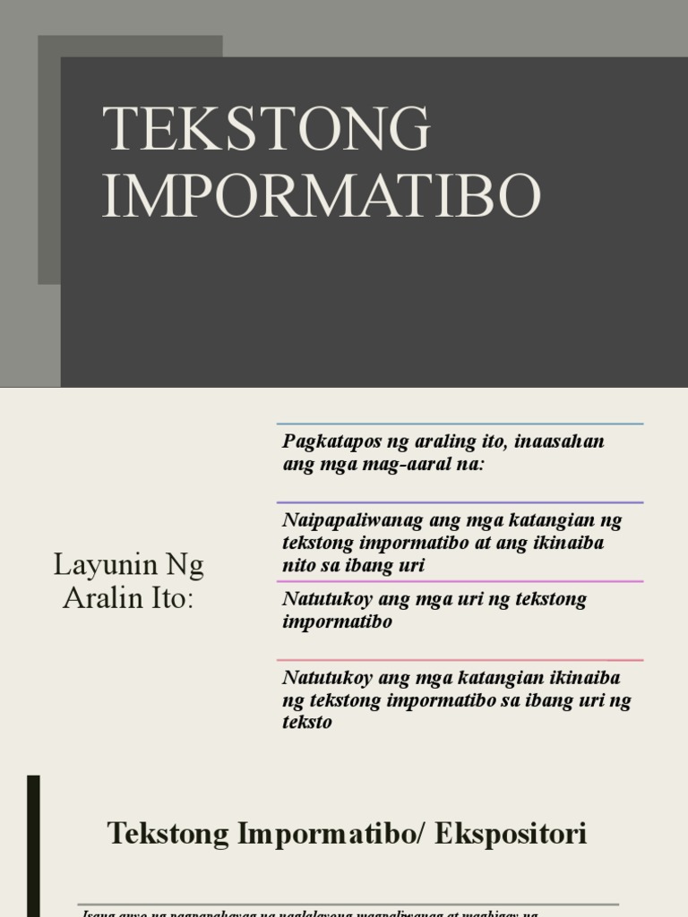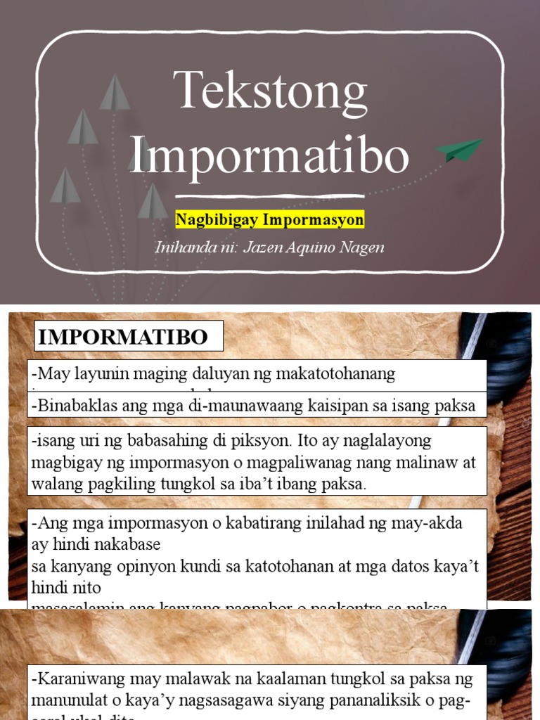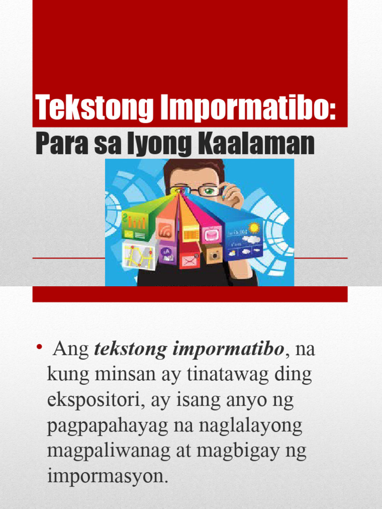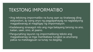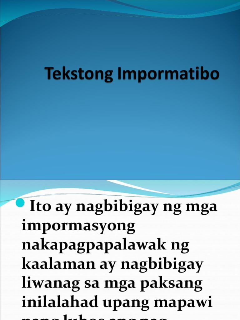 Tekstong Impormatibo - Filipino - TEKSTONG IMPORMATIBO Ang tekstong ...