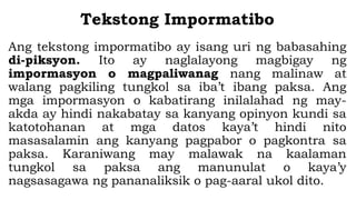 Iba't ibang uri ng teksto tekstong impormatibo, | PPTX