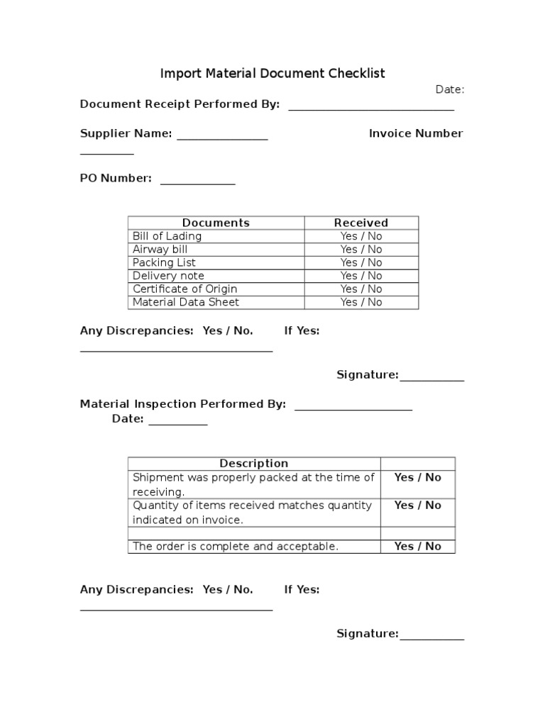 Import Material Checklist | PDF | Invoice | Service Industries
