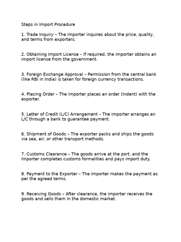 Steps in Import Procedure | PDF