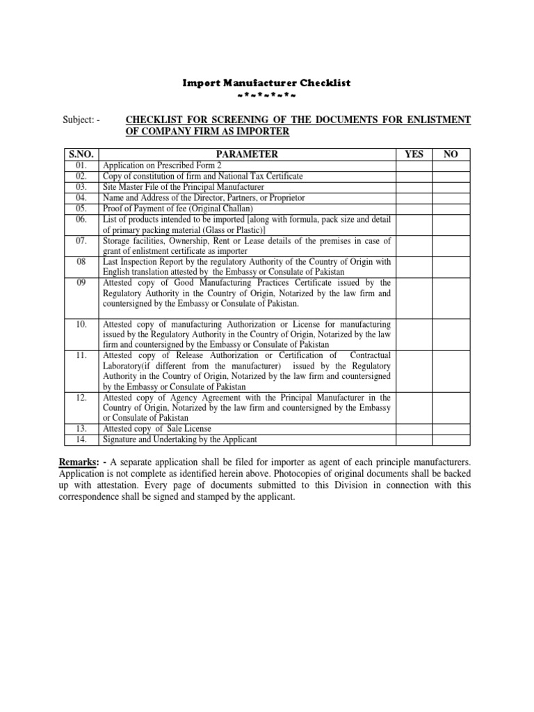 Importer Manufacturer Screening Checklist | PDF | Notary Public | License
