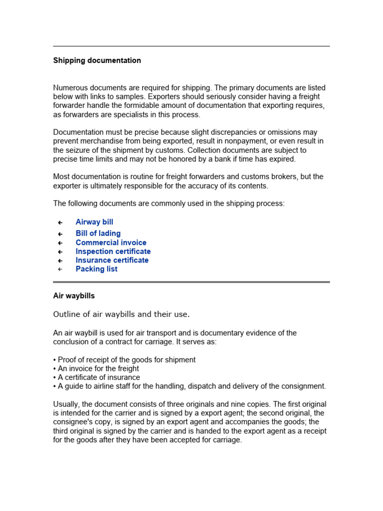 Overview infographic of the types of shipping documents used in the ...
