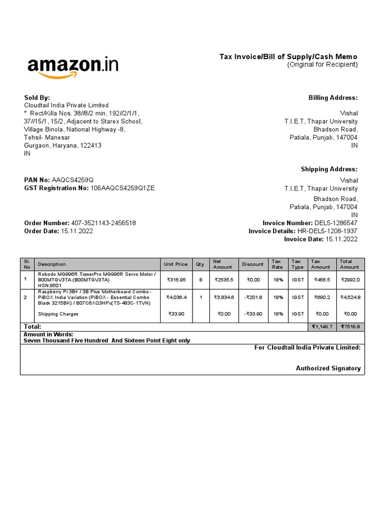 Amazon Invoice. Bill PDF | PDF