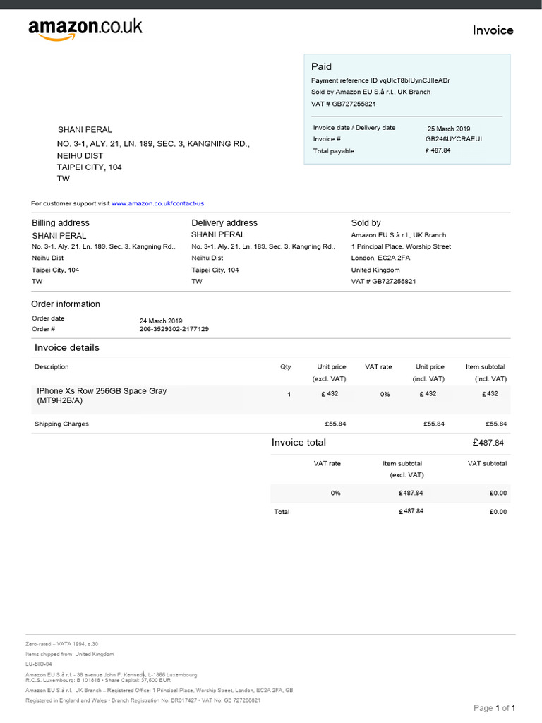 Amazon United Kingdom 591026905-Invoice | PDF | Invoice | Value Added Tax
