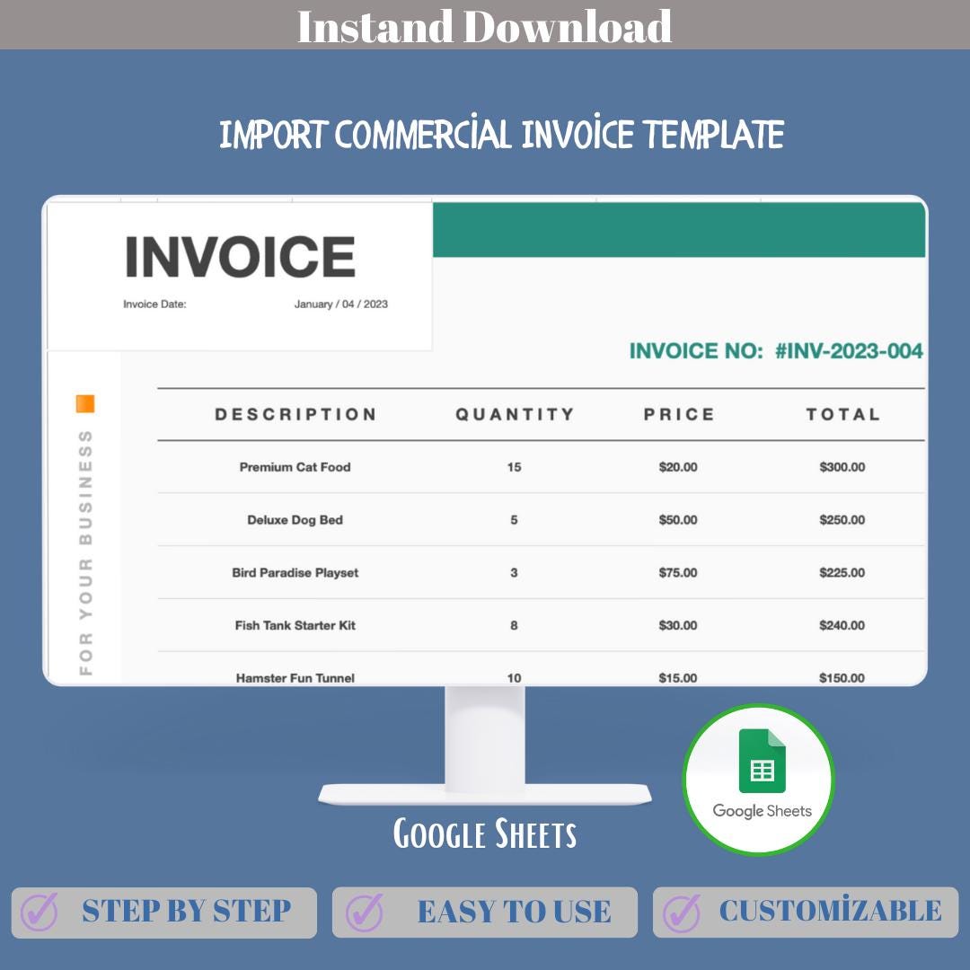 Import Commercial Invoice Template in Excel, Google Sheets - Download ...