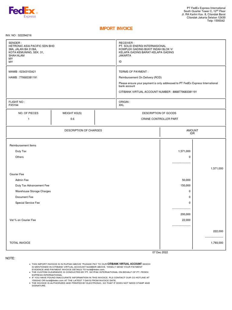 Freight Invoice (Import) ALWAYS 1123 | PDF