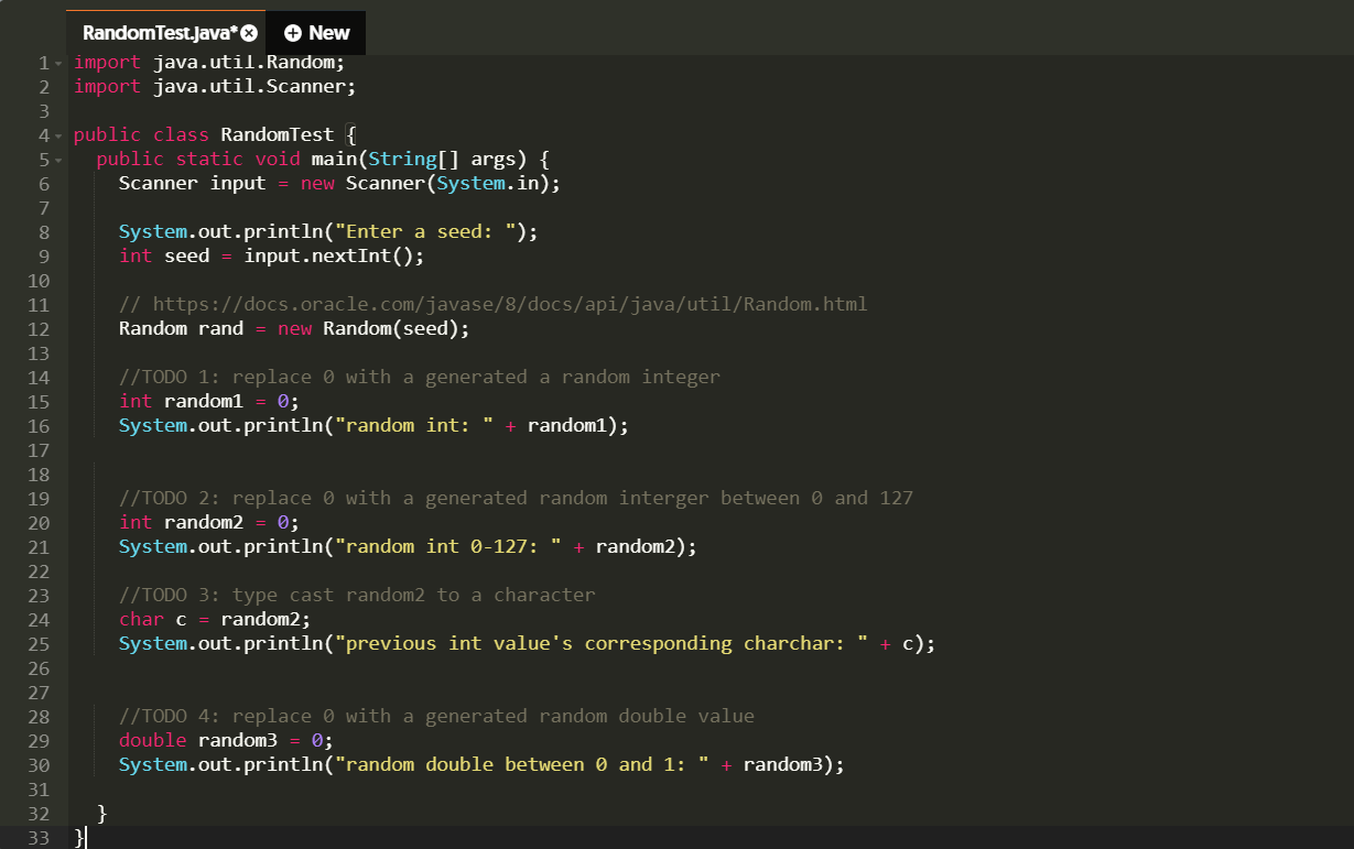 Solved 8 RandomTest.java** + New 1- import java.util. | Chegg.com