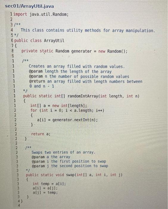Solved sec01/ArrayUtil.java 1 import java.util. Random; 2 | Chegg.com