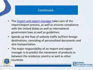 PPT - IMPORT MANAGER The import manager advises the organisation in ...