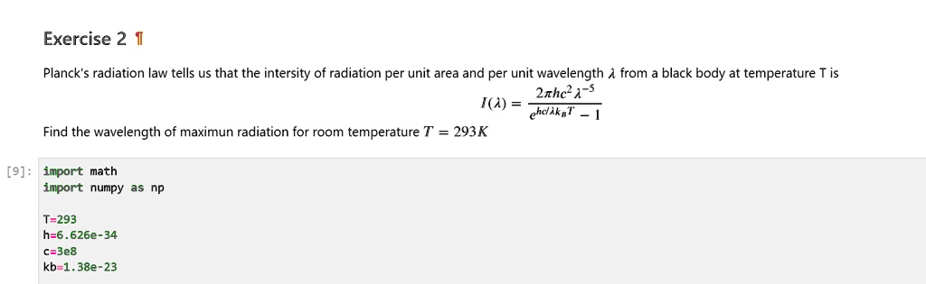 Exercise 2 1 Planck's radiation law tells us that the intersity of ...