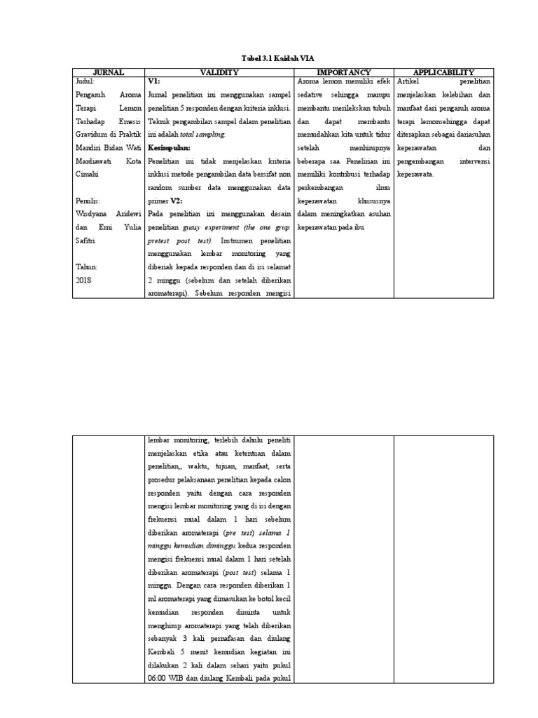 Tabel 3.1 Kaidah VIA Jurnal Validity Importancy Applicability V1 | PDF ...