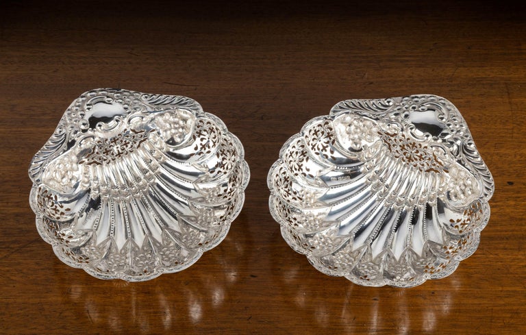 Extremely Pretty Pair of Edwardian Silver Shell Dishes For Sale at 1stDibs