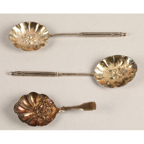 Two fruit salad spoons hallmarked Sheffield 1861 and a caddy spoon ...