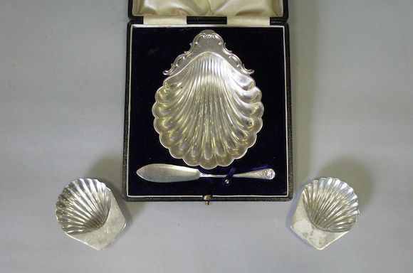 Bonhams : Ten small metalware shell butter dishes, impressed 925 and ...