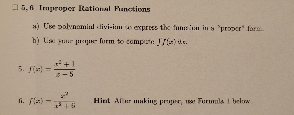 Solved 5,6 Improper Rational Functions a) Use polynomial | Chegg.com