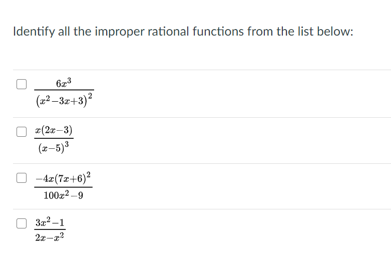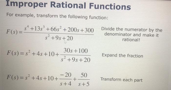 Solved Improper Rational Functions For example, transform | Chegg.com