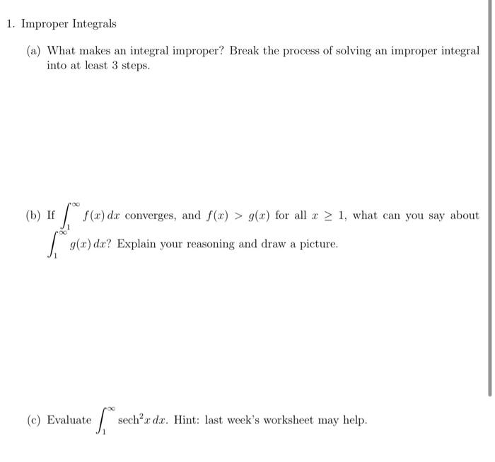 Solved 1. Improper Integrals (a) What makes an integral | Chegg.com