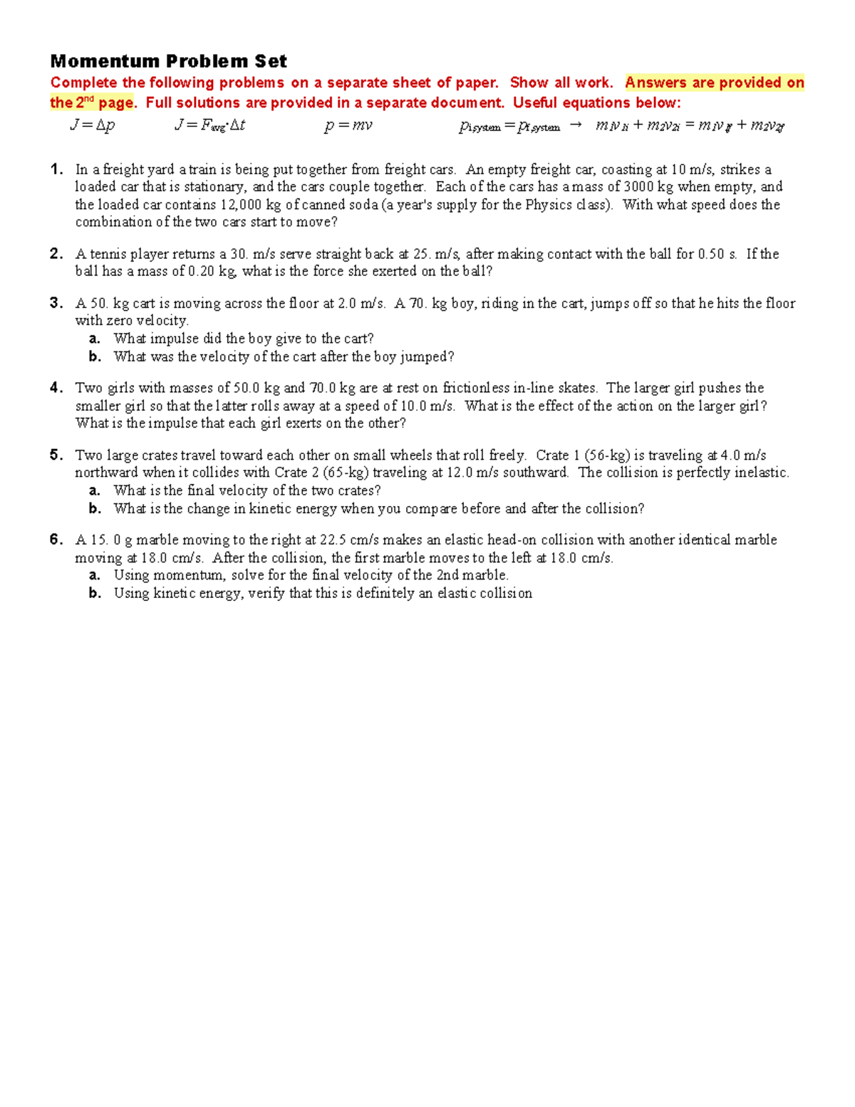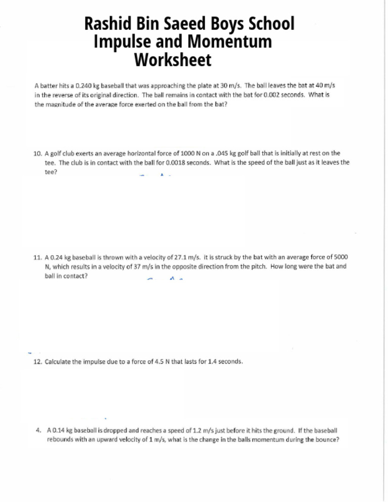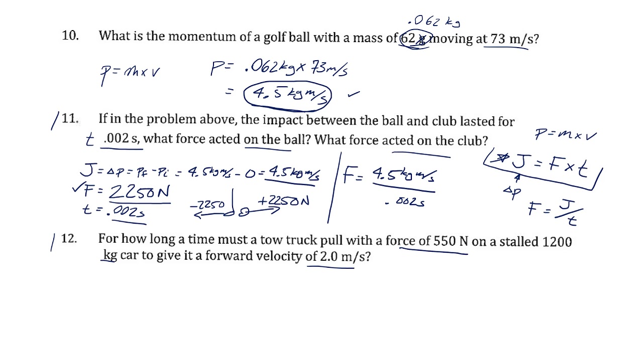 Impulse Problems Answer Key | PDF | Momentum | Force - Worksheets Library