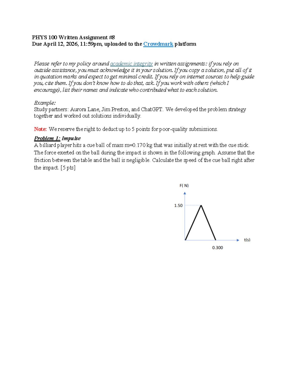 PHYS 100 Written Assignment: Impulse Problem Analysis - Studocu