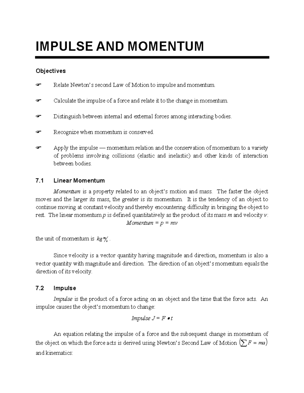 Lec7 - Impulse and Momentum Concepts and Problems Notes - Studocu