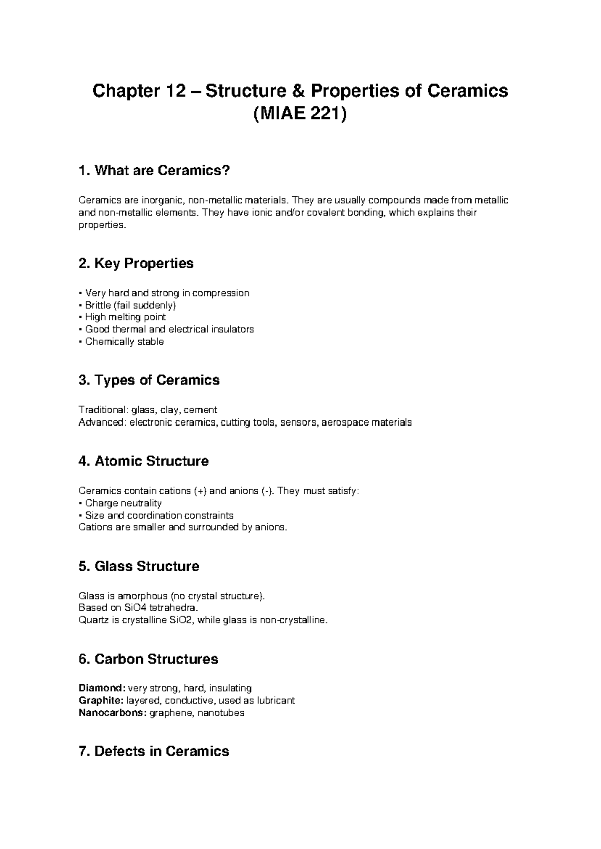 Chapter 12: Structure and Properties of Ceramics (MIAE 221) Notes - Studocu