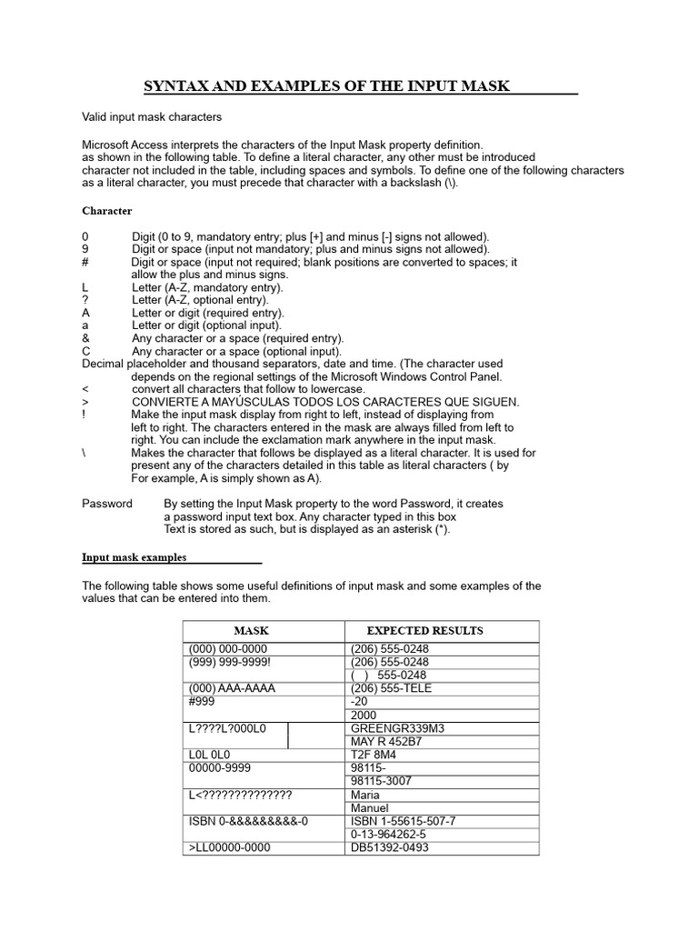 Input Mask Syntax and Examples in Access | PDF | Microsoft Access ...