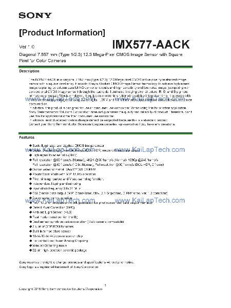 IMX537-AAMJ/AAQJ datasheet - CMOS Image Sensor for Industry. Resolution ...