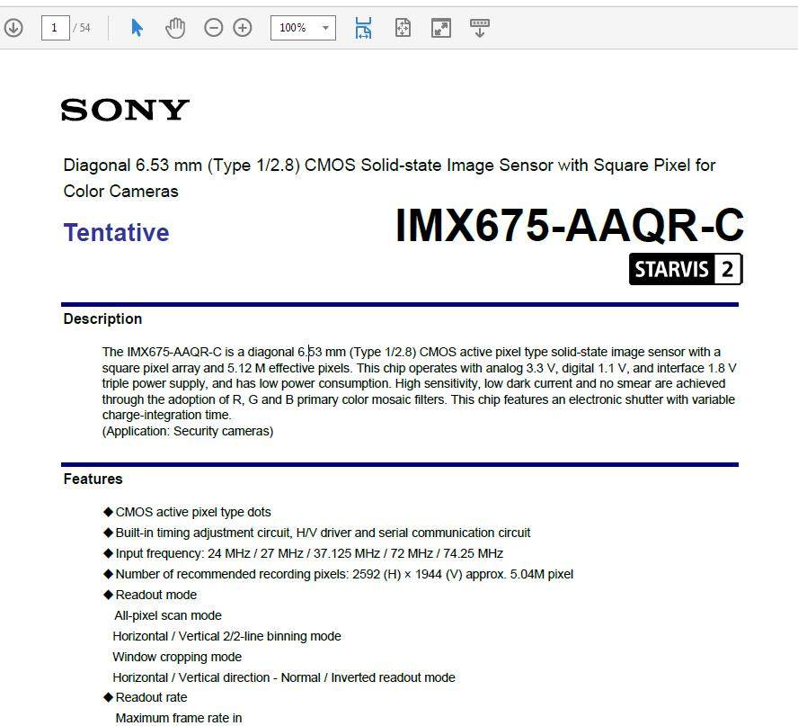 适用SONY IMX675-AAGR-C资料手册 电子零件技术文件下载 索尼影像感测器技术资源