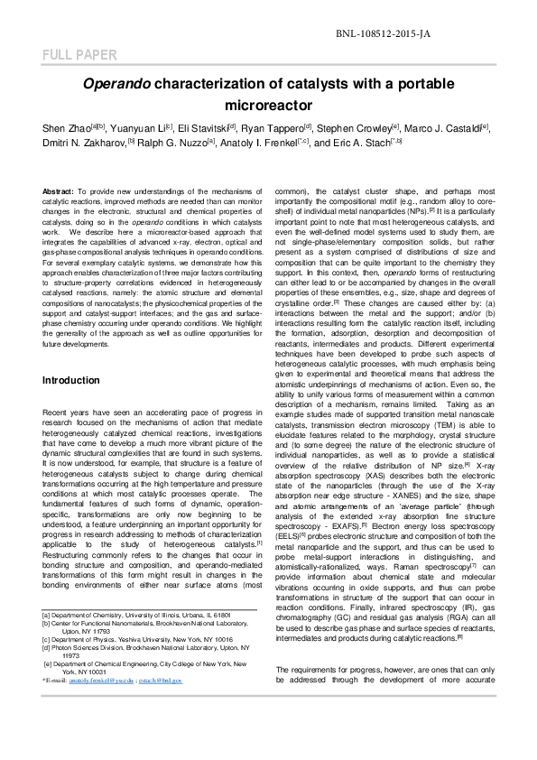 (PDF) Operando Characterization of Catalysts through use of a Portable ...