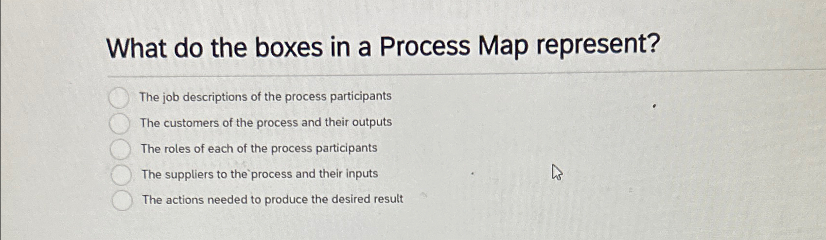 Solved What do the boxes in a Process Map represent?The job | Chegg.com