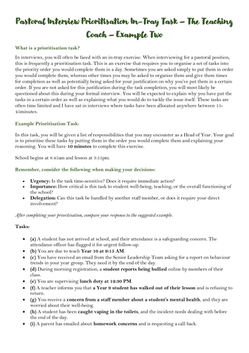 Teaching Teacher Interview Preparation | Prioritisation Task | In Tray ...