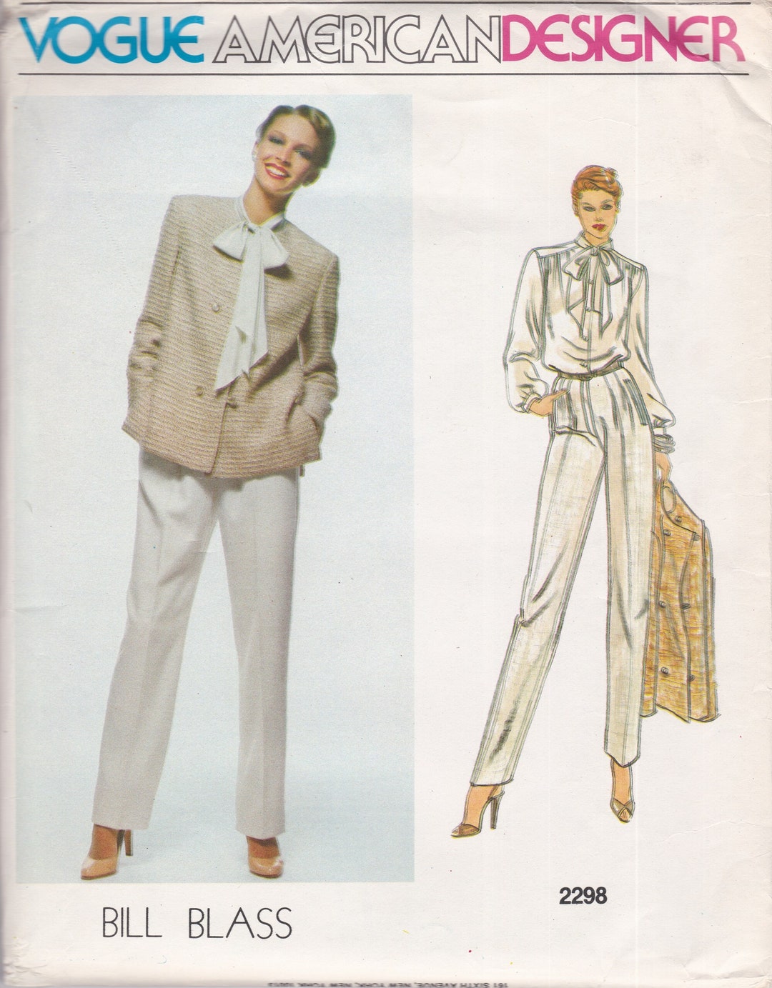 Vogue 2298 Vintage Designer Sewing Pattern by Bill Blass Trousers Pants ...