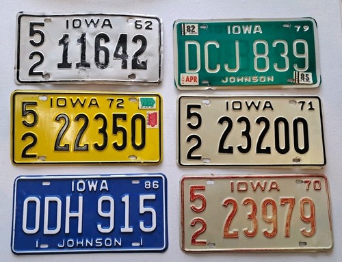Iowa License Plates Lot of 6 Vintage 1962 thru 1986 | eBay