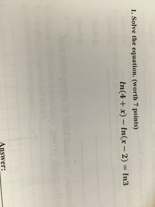 Solved Solve the equation, in(4 + x) - in(x -2) = in3 | Chegg.com