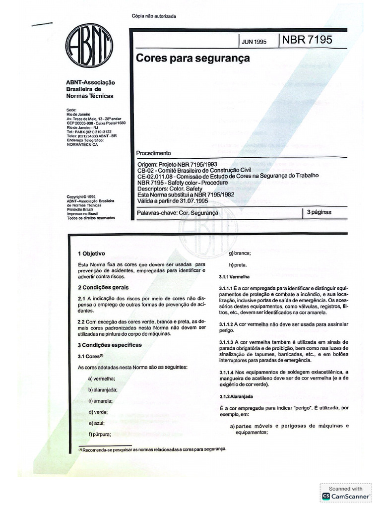 NBR 7195 - Cores para Segurança | PDF | Cor | Vermelho
