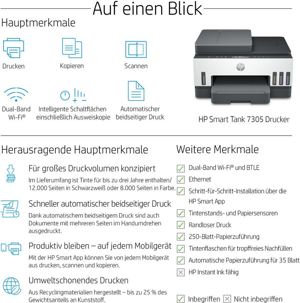 HP Smart Tank 7305 All-in-One Wireless Printer, Light Basalt