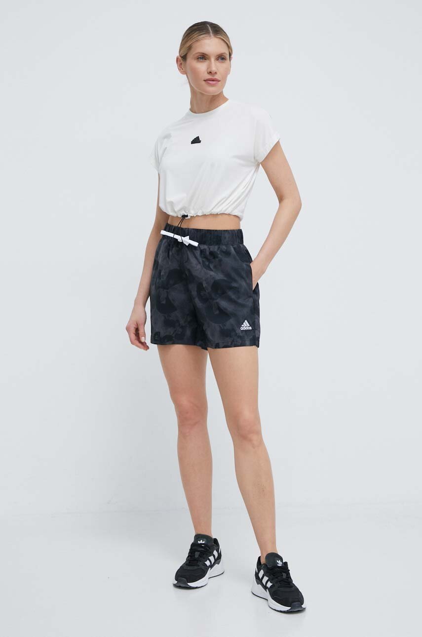 adidas szorty damskie kolor szary wzorzyste high waist IN7318 | Answear.com