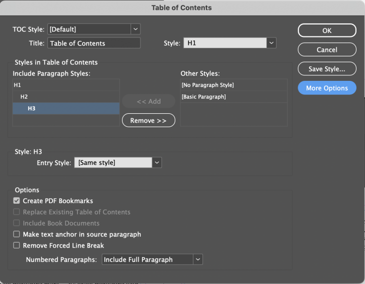 InDesign Create Table of Contents based on character style? - Graphic ...