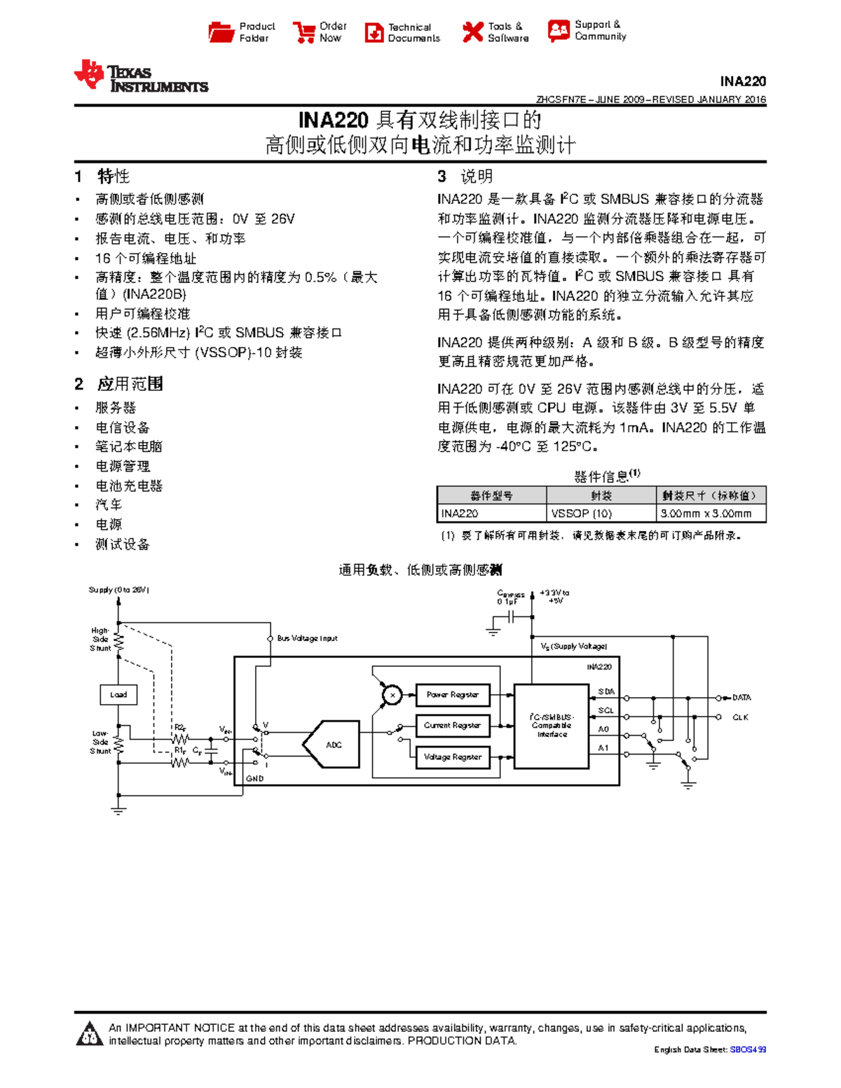 INA220-Q1 Datasheet PDF (I2C-Compatible Current/Power Monitor) | Texas ...