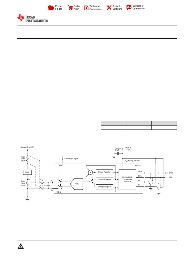 INA220 Datasheet (Bidirectional Current and Power Monitor) | Texas ...